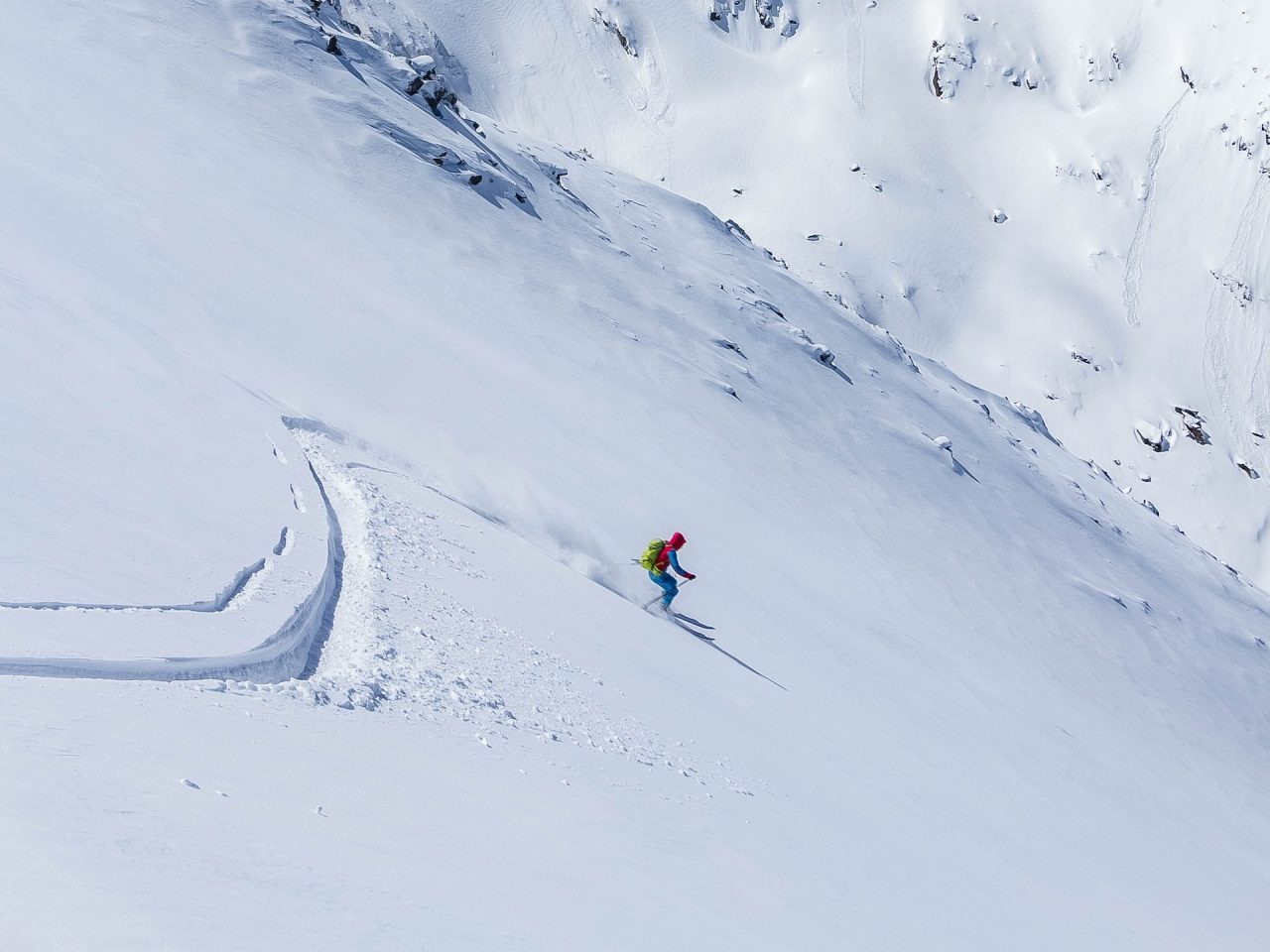 Para esta prueba se debe girar sobre la nieve abriendo una brecha para verificar si surgen grietas en las proximidades de la misma.